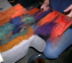 Natural dyeing, spinning and felt making - can all be seen in Rosie’s workroom, a useful space if you are unlucky with the weather! School groups studying textiles might like to visit the workroom to find out about wool and listen to the "story of a woolly jumper", or if they have been studying the Saxons, the "story of a woolly tunic". Rosie is happy to talk to the children about different animal and vegetable fibres and the textiles and dyes that relate to a particular period in history.