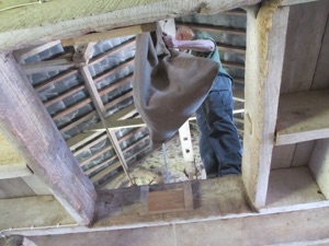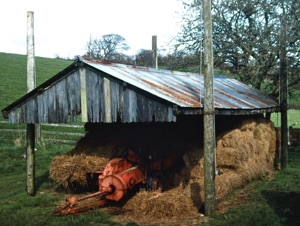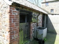 A range of traditional farm buildings - mostly Victorian like the mill and built in stone with slate roofs. There is a stable with a cobbled floor and hay loft above, a shippen for milking four cows and there are two old pig-sties. The Dutch hay-barn with adjustable-height roof has been restored to working order. An old cob barn was restored in 2010. The farm buildings with the mill make an ideal focus for a study of the history of farming for schools or adult groups.